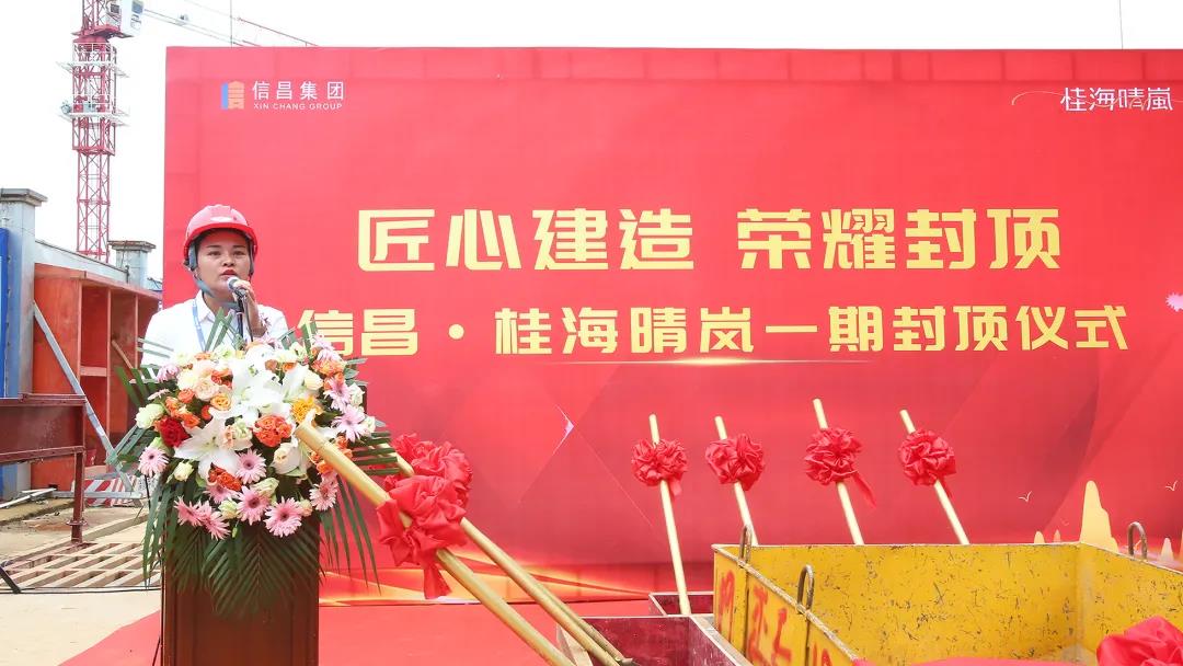 封頂儀式上,桂海晴嵐項(xiàng)目總經(jīng)理陶素英女士上臺(tái)致辭,她表示:“信昌·桂海晴一期榮耀封頂,標(biāo)志著項(xiàng)目建設(shè)踏入新的里程碑,同時(shí)也預(yù)示著業(yè)主離夢(mèng)想之家更進(jìn)一步。這不僅僅是一次封頂儀式,更是美好承諾的兌現(xiàn),是一城期待的實(shí)現(xiàn)?!?/span>