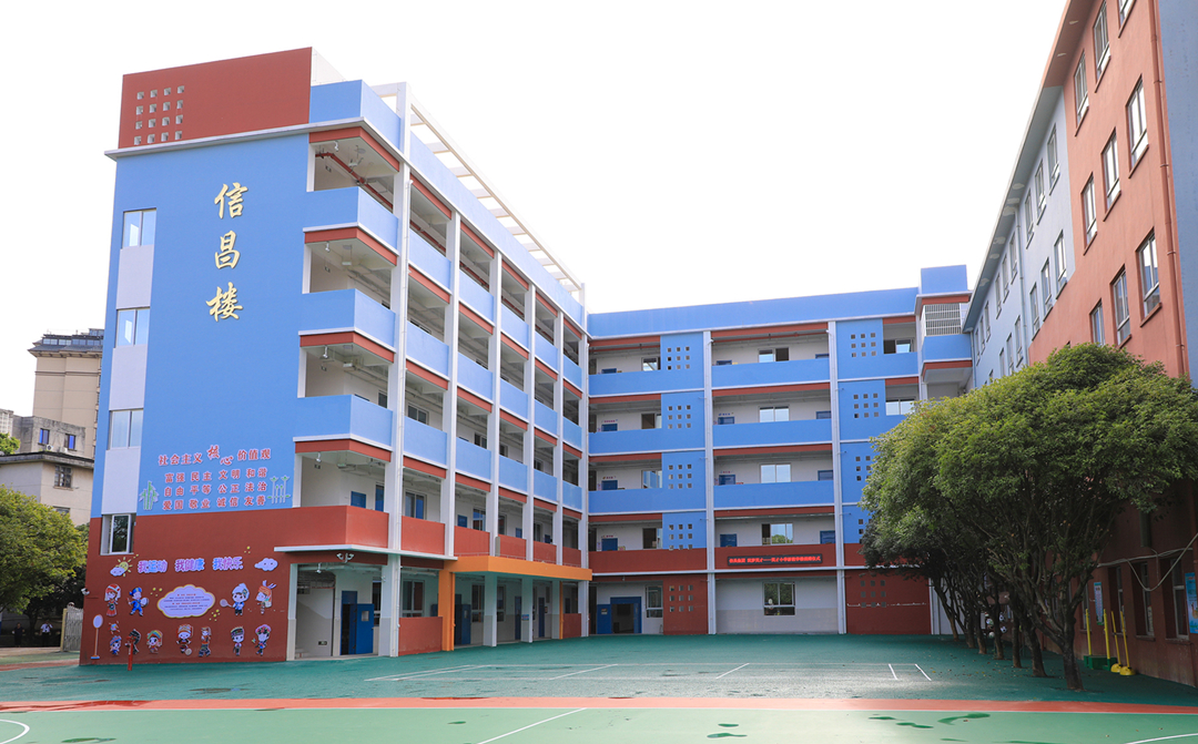 信昌樓是一棟教學(xué)綜合樓,占地面積704.37㎡,設(shè)有教學(xué)室共32間,其中配置了圖書室、階梯室、微機(jī)室、科學(xué)實(shí)驗(yàn)室、美術(shù)室、音樂室等多個(gè)功能教學(xué)室,教學(xué)樓前還設(shè)立了一個(gè)橡膠運(yùn)動(dòng)場(chǎng)。高規(guī)格的硬件投入與優(yōu)質(zhì)教學(xué)資源的充分融合,讓英才小學(xué)的教育資源與教學(xué)環(huán)境質(zhì)量有了大幅度的提高。