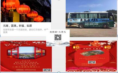 為更好地宣傳推廣大碧頭國際旅游度假區(qū),營銷中心堅持線上線下的聯(lián)動宣傳,協(xié)助進行員工大巴車身廣告上畫、客房部客用品及標識標牌設(shè)計、景區(qū)管理部的園區(qū)觀光車車貼設(shè)計、撰寫旅游區(qū)用于高鐵宣傳的相關(guān)簡介等工作。對外,積極督促客立方公司完成了新年祝福H5制作、情人節(jié)軟文及元宵節(jié)軟文制作;與全州、永州等地的大型超市洽談了招聘廣告位擺放事宜;與分眾傳媒、新潮傳媒公司洽談了廣告投放事宜。