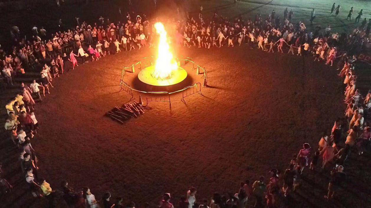 群眾們,圍著火堆,臉上滿滿的笑容,看的出他們心中的喜悅,他們盡情歡笑,盡情的嬉戲,想象他們心里無比的興奮 激動(dòng)喜悅 欣慰, 歡樂種種情緒。
