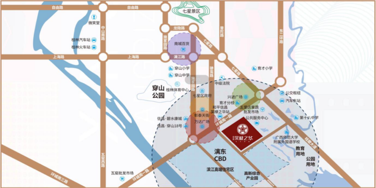項目所處七星區(qū)位于漓江東岸,被譽為“傳統(tǒng)富人區(qū)”,是我國首批國家級高新開發(fā)區(qū),亦是桂林中央商務(wù)區(qū)、漓東CBD。位于環(huán)城南一路9號(高新萬達(dá)廣場斜對面),周邊交通四通八達(dá),三十分鐘通達(dá)全城;經(jīng)穿山路十分鐘可到達(dá)桂林動車站,十五分鐘到達(dá)桂林汽車客運總站,三十分鐘到達(dá)桂林兩江國際機場。