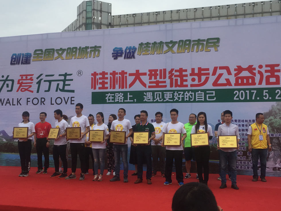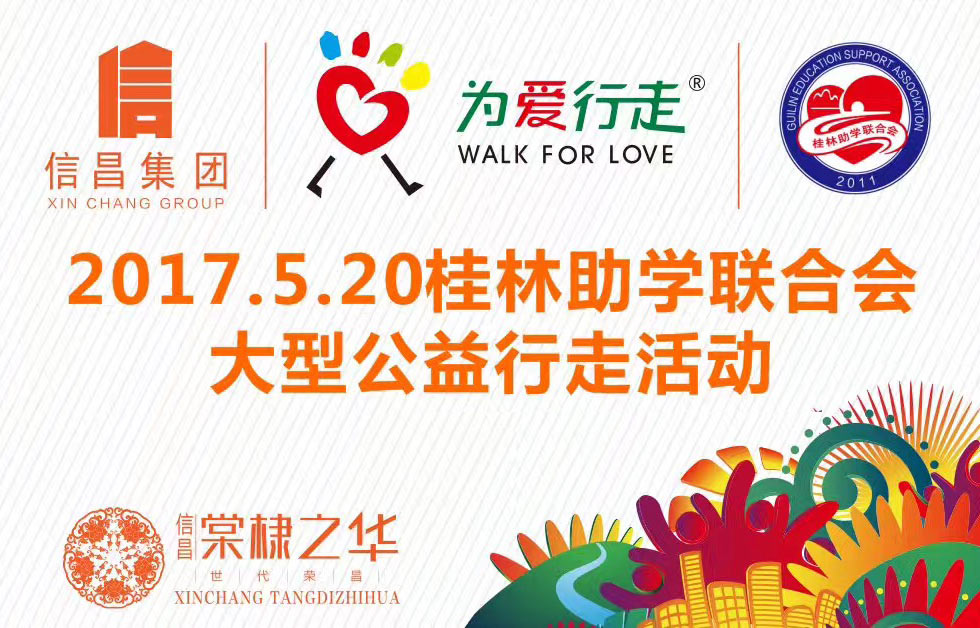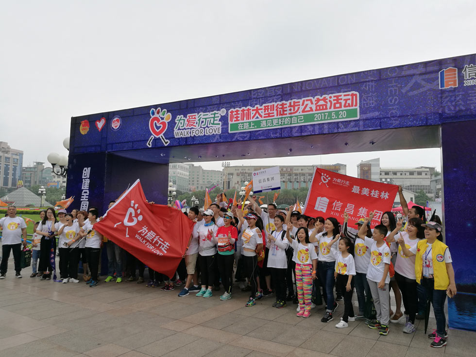 5月20日,桂林助學(xué)聯(lián)合會等社會公益組織舉辦的以“創(chuàng)建全國文明城市 爭做桂林文明市民”為主題的“為愛行走”大型徒步公益活動,近兩千名青少年和市民參加了這一活動?!盀閻坌凶摺笔菍ⅰ斑\(yùn)動、公益、城市文化”融為一體,傳播正能量,倡導(dǎo)萬眾健身、全民公益的大型徒步活動