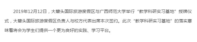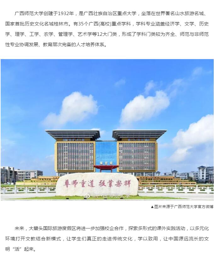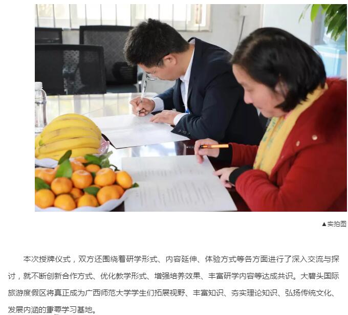 國家AAAA級景區(qū)大碧頭國際旅游度假區(qū)與廣西師范大學(xué)教學(xué)科研實習(xí)基地正式授牌簽約!
